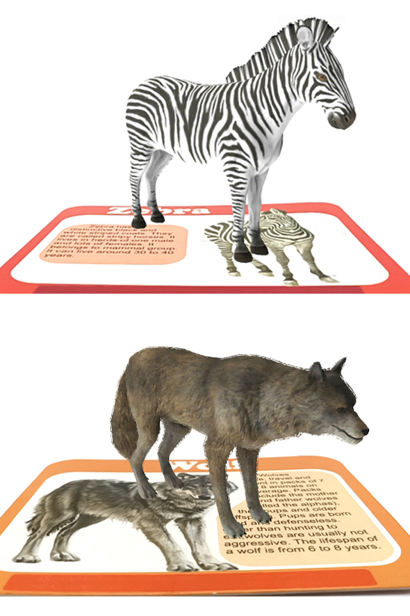 What is Augmented Reality Flash Card?  AR flash card is a flashcard which compiled with augmented reality interactive 3D elements that 3D elements match move with flash card. That means if you rotate the flashcard, 3D elements fix on the flashcard and move with the flash card. Children can touch 3D elements and the 3d elements react according to the children interaction.  This Interactive experience enhances children Learning process. It shrinks the time of children learning process.  Shristee Animaax has our Native Tool for Image Recognition and Match Move. Through the tool, we developed the augmented reality app for scanning the flash cards.  Download and install our VisionMaya app from Google play Store for Android devices and from Apple App Store for Apple devices. Or you can scan the QR code printed in the packages front cover card for downloading the app. Each product pack consists of an Activation card printed with an unique QR code. Activation QR code is unique so once you activated in a device, it can not be activated in any other devices.  After app installation in your device, you can launch the app and it opens your devices camera. You have to scan Activation QR code at the first time of scanning for activating the app.  For activation and downloading 3D models, your device needs an internet data connection. Until clear the App Data or Cache memory, downloaded 3d Animal in your local Storage immediately appears while children scanning the flash card.  Through this App, our Centre can send push notifications to app holders and Technology Centre promotions and advertisements can also run in this app.How to activate App?  Scan anyone of the flashcard in the package.  Very first time, app asks you to scan QR code for activation.  Back side of cover is Activation card you can see activation QR code their.  One activation card is used for one phone only.  If you scan activation QR code in one phone, you cant use it on another phone.